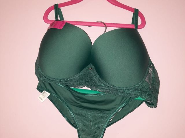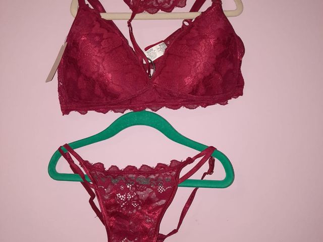 Conjunto triángulo soft, con encaje, collar desmontable y less regulable. Talle 95 y 100. Color: frutilla. Marca SIGRY