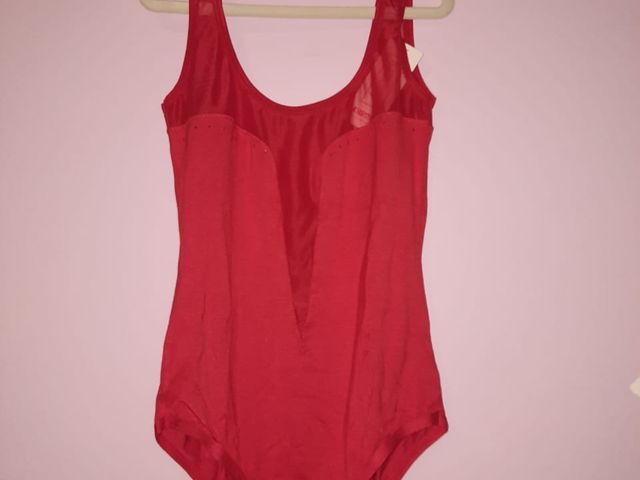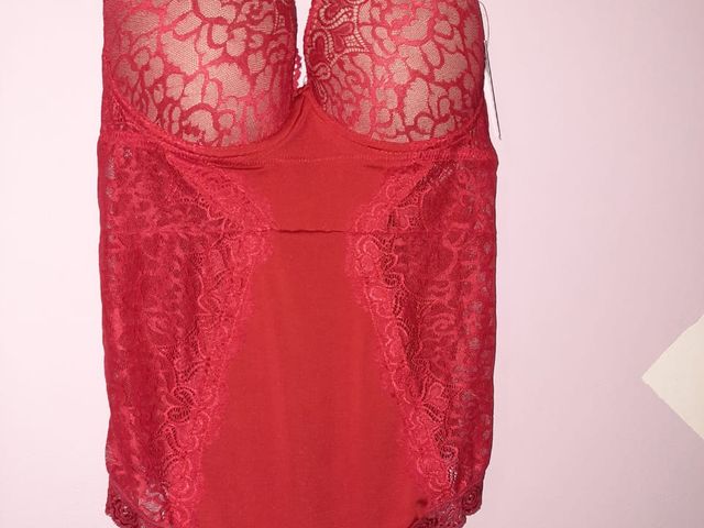 Body color rojo, talle 95. De elástico y encaje.